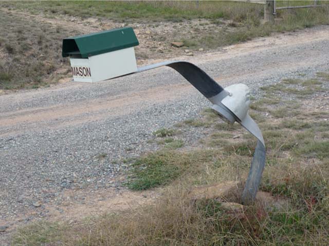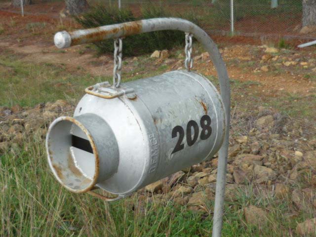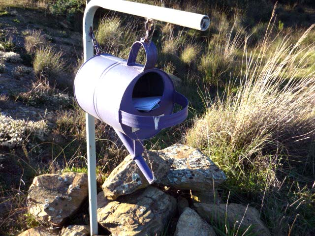 In a belated recognition of 200 years of mail delivery (including more than 30 years to our immediate area) I present to the reader a small selection of the wizardry gracing the roadsides in our region. I leave it to you to form your opinion of the artwork and to ponder on the likely personality or multiples thereof of each artist. Given the eclectic array of the mail receptacles dotting our locality I can only imagine the challenge that besets the poor old posties as they go about their business, although, it must make for variety.